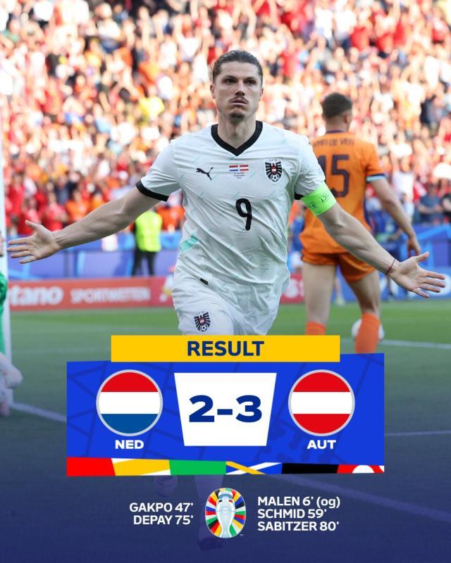 【欧洲杯】奥地利3比2荷兰头名出线,荷兰落至第三