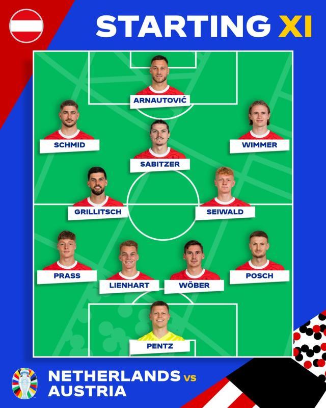 奥地利队首发:彭茨/波施,马克西米利安·韦伯,林哈特(62'奎尔费尔德),普拉斯/赛瓦尔德,格里利奇(62'莱默)/帕特里克·维默(62'鲍姆加特纳),扎比策,罗马诺·施密德(90+2'魏曼)/阿瑙托维奇(79'格雷戈里奇)