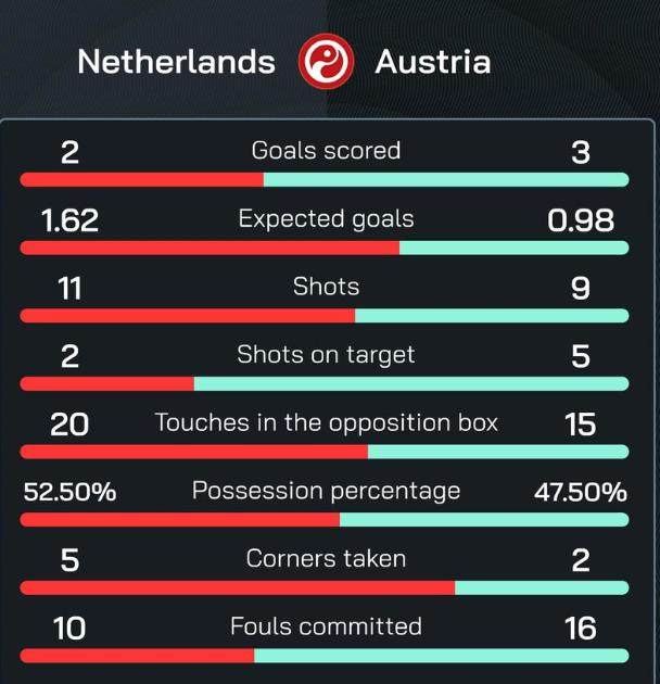 第47分钟,哈克波弧线球帮助荷兰扳平比分。荷兰重回第一,奥地利落到第三。